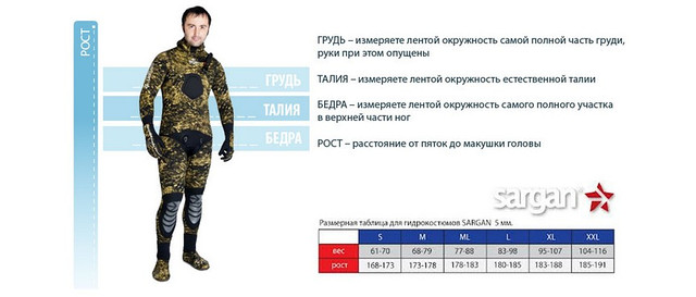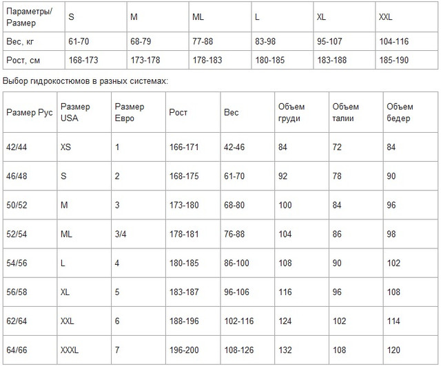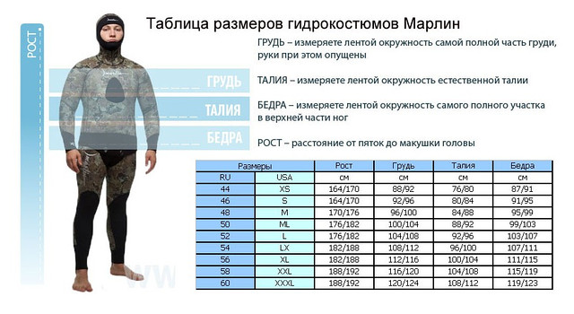 Размерная таблица гидрокостюмов Размерная сетка Beuchat Размерная сетка Cressi Размерная сетка OMER Размерная сетка Sargan Размерная сетка Marlin