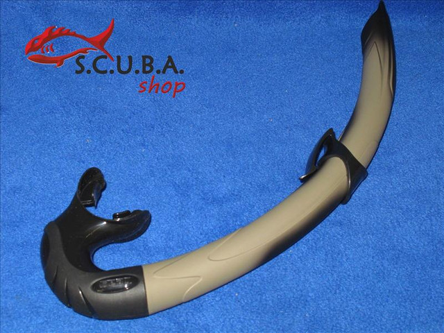 Загубник виготовлений з 100% чорного рідкого силікону, який є гіпоалергенним, має термічною та хімічною стійкістю, стійкий до впливу ультрафіолетових променів. Тіло трубки виготовляється з високоякісного PVC (ПВХ пластику), що значно збільшує період її експлуатації. Кріпиться трубка до ремінцям маски з допомогою швидко регульованою гумової кліпси. Загубник виготовлений з чорного силікону не викликає роздратування. Трубка виконується камуфляжного кольору з чорним загубником. Верхній край трубки зрізаний під кутом, завдяки цьому при спливанні протикає тіну.